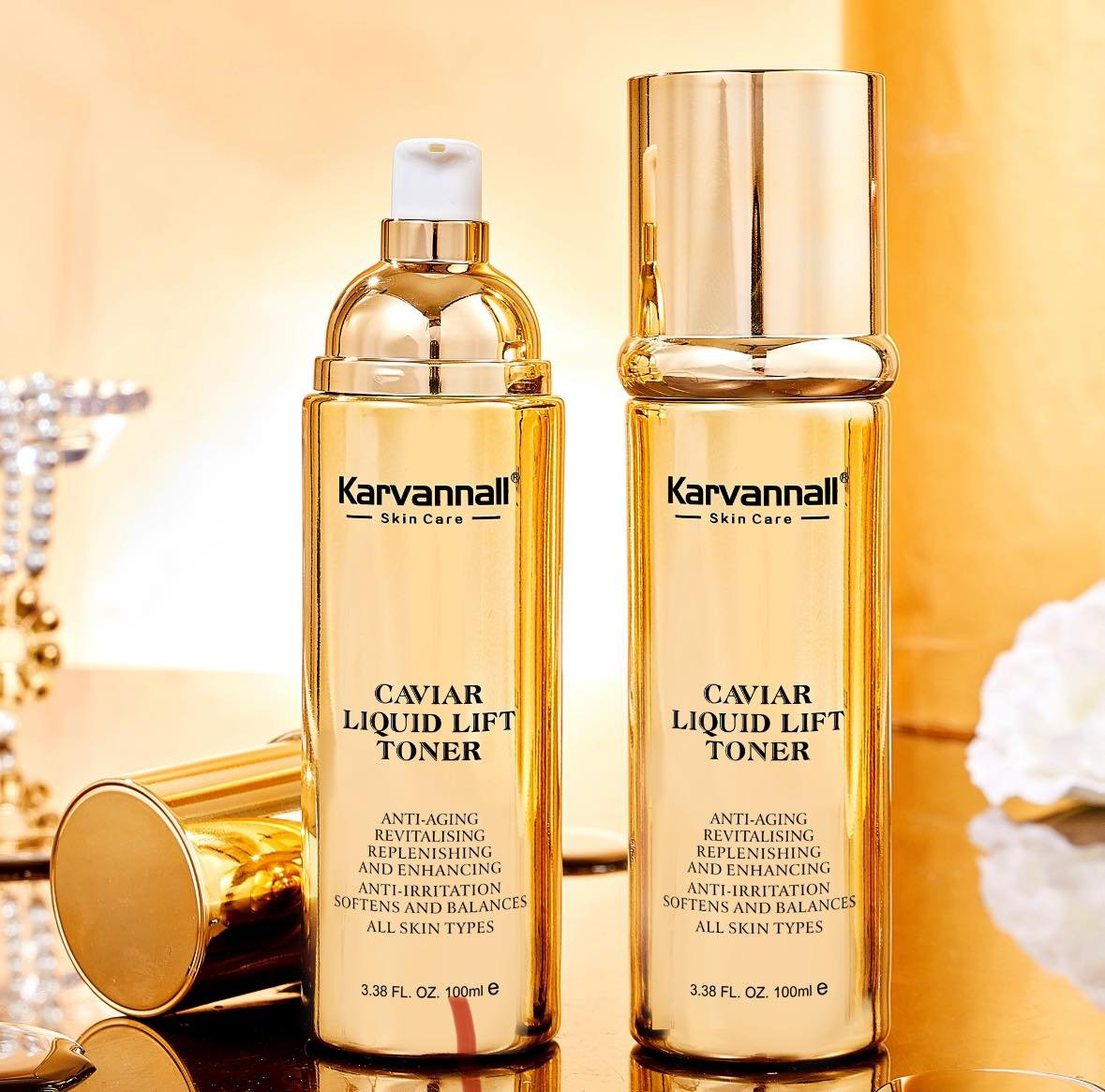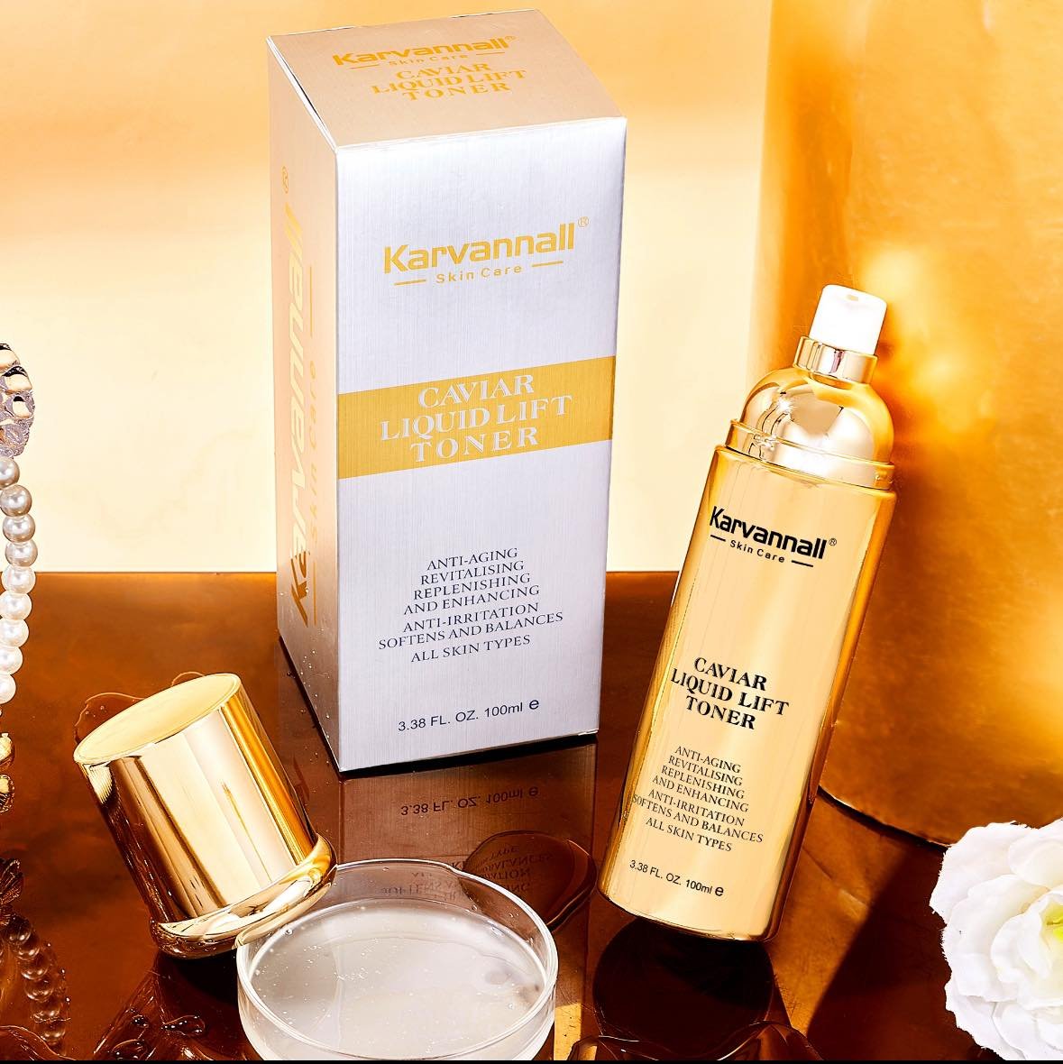 Karvannall has invented Caviar Infinite, an optimal combination of caviar components enhanced to target the skin’s vertical pillars, via groundbreaking research. To maximize efficiency, Caviar Infinite is injected into a micro-fluidic formulation that isolates its oil and water-based components.