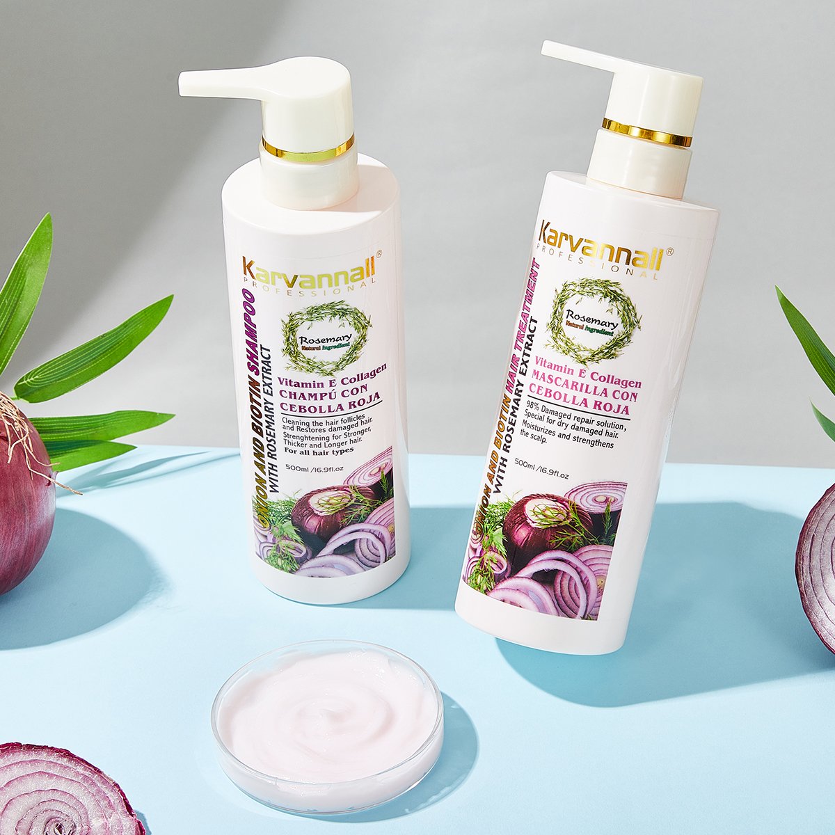- DUAL FORMULA SET: Professional hair care system featuring Vitamin E Collagen Shampoo and Treatment mask with Rosemary and Red Onion extract for comprehensive care.